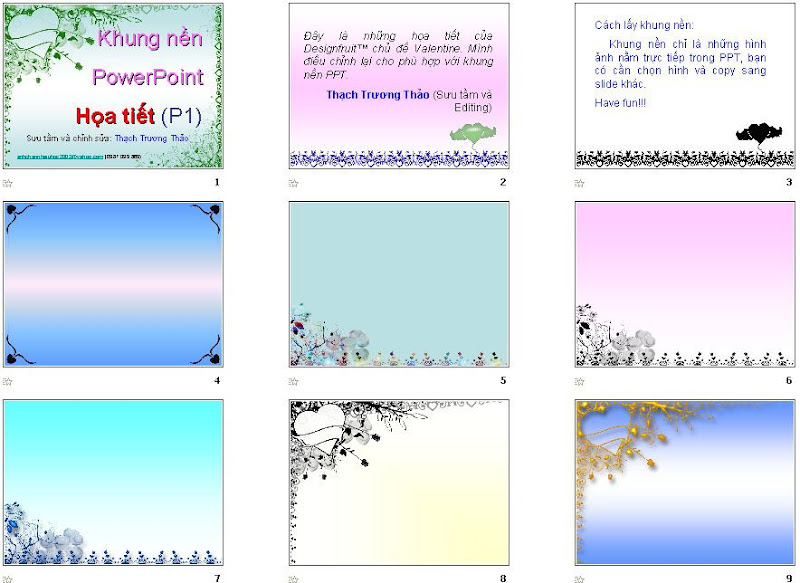 Đây là những họa tiết của Designfruit™ chủ đề Valentine. Mình điều chỉnh lại cho phù hợp với khung nền PPT.